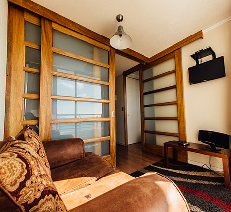 Departamentos de 1 habitación con sala de estar, amoblados completamente, terraza amoblada con vista al mar.